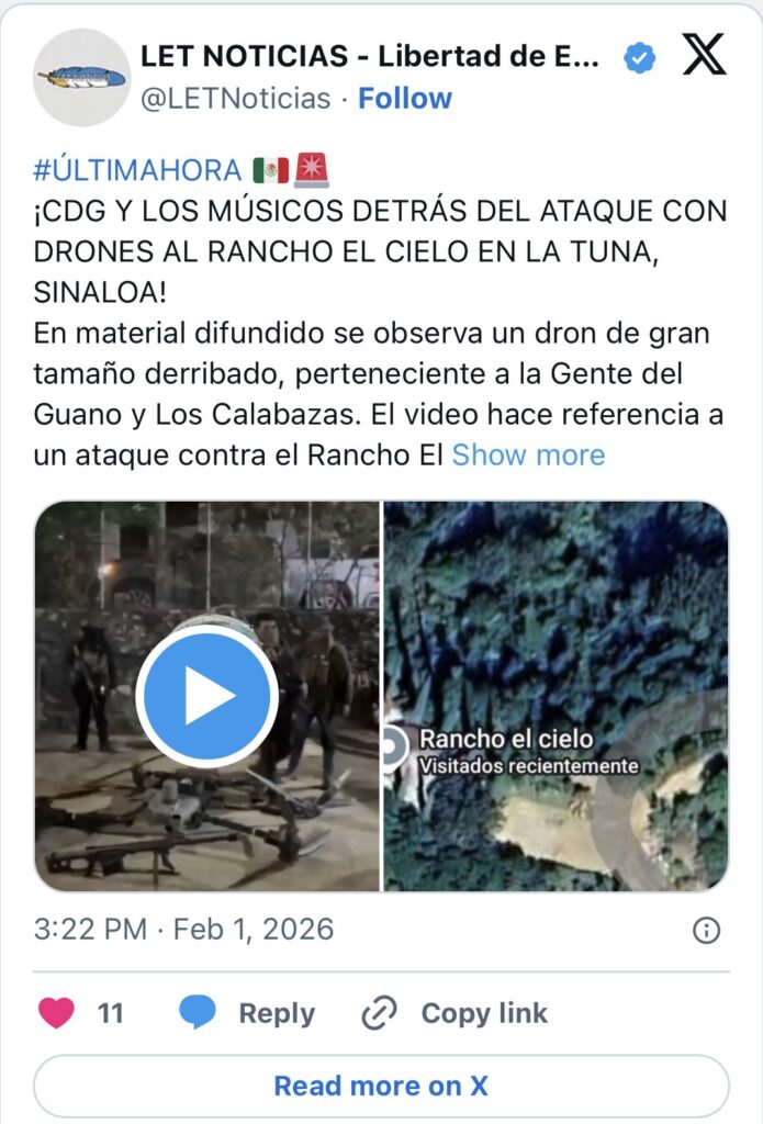 Videos colgados en redes sociales atribuyen la incursión de grupos criminales desde el aire, utilizando drones para atacar a la propiedad.