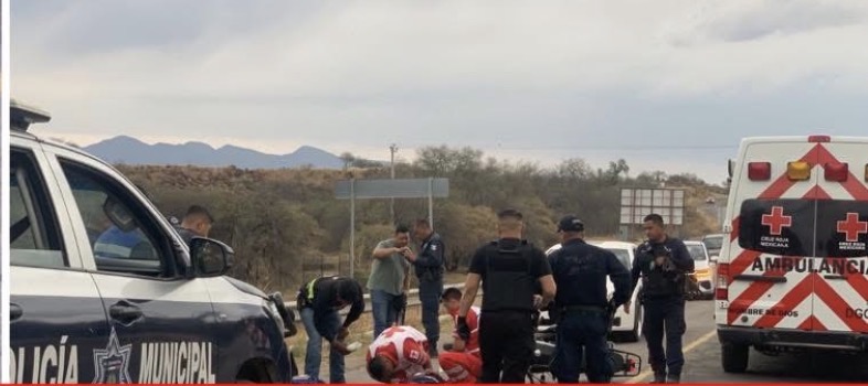 Se registró un accidente tipo derrape de motocicleta, por lo que al arribar al lugar los cuerpos de auxilio localizaron a un masculino tendido