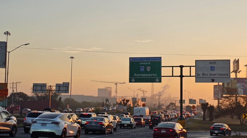 Largas filas de vehículos se registraron en la autopista Monterrey–Reynosa, en dirección al Aeropuerto Internacional de Monterrey, luego de que el Gobierno del Estado reactivara
