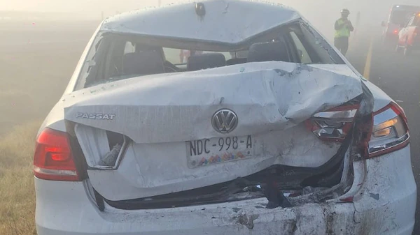 Una densa niebla y quema de pastizales sobre las orillas del Libramiento Lerma Ruta de la Independencia-Bicentenario, en las inmediaciones del municipio de Xonacatlán, en